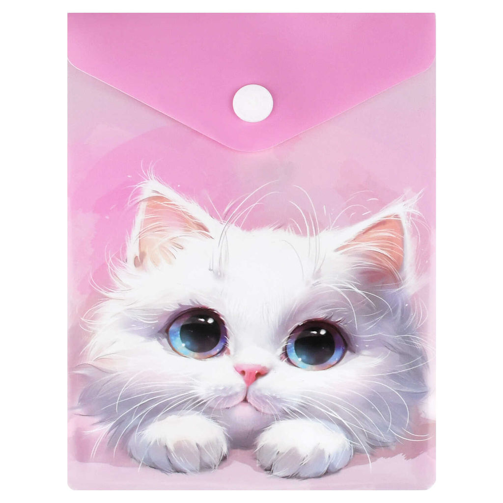 Папка для документов пластиковая Феникс+, арт. 72384/ 12 БЕЛЫЙ КОТ (полипропилен, формат А6, 15.8х11.4 см, 1 отделение (-я), кнопка, УФ-печать)