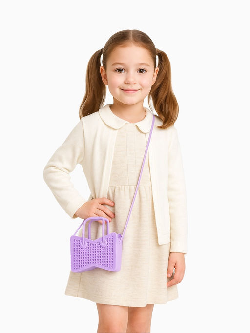 Эта нежная сумочка создана для маленьких модниц, которые только учатся самостоятельности. Сиреневый цвет напоминает весенние цветы, а мягкий материал приятен для детских рук. Открытый верх делает её идеальной для первых попыток собирать свои вещи — можно легко положить и достать любимую мелочь без помощи взрослых.Основные характеристикиДетская сумка-тоут из мягкого силиона нежного сиреневого оттенкаДве удобные ручки и длинный регулируемый ремень для разных вариантов ношенияОткрытое отделение без застёжки для быстрого доступа к содержимомуЛаконичный дизайн без рисунка сочетается с любой одеждойКомпактный размер идеально подходит для детских вещейДля чего она нужнаЭта сумочка помогает развивать самостоятельность — в ней можно носить платочек, маленькую игрушку или фрукты для прогулки. Регулируемый ремень позволяет подобрать удобную длину, а лёгкий материал не утяжеляет даже когда сумка пустая. Станет верным спутником в детском саду, на прогулке или в гостях, где так важно чувствовать себя уверенно и самостоятельно. Для кого: Для девочки. Длина, см: 17. Ширина, см: 4. Высота, см: 12. Количество отделений: 1. Вид застёжки: Без застёжки. Рисунок: Нет. Регулируемый ремешок: Да. Модель сумки: Тоут. Изображение: Без рисунка. Бесплатная доставка: Да. Размеры товара: 4/12/17. Примечание: Оттенок данного товара может незначительно отличаться от фото/видеоизображения (в зависимости от настроек яркости вашего экрана)..