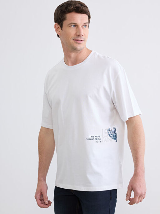 Bisiklet Yaka ?stanbul Bask?l? Erkek Ti??rt