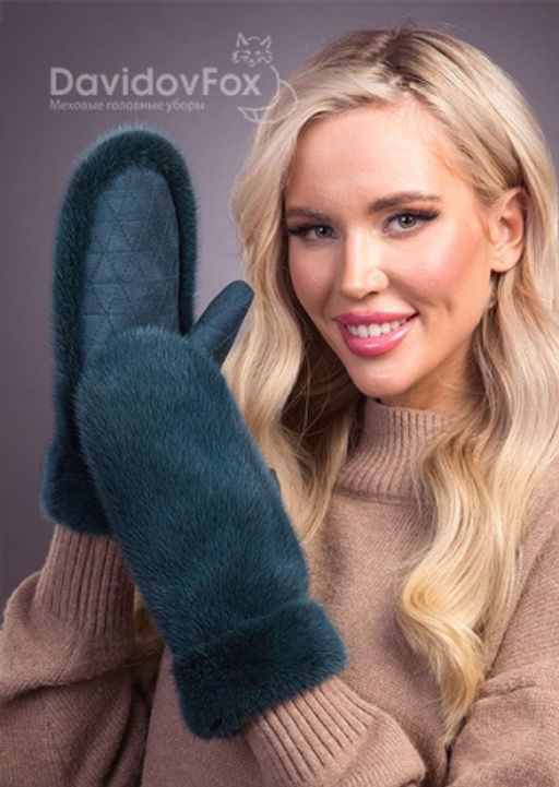 Артикул: Варежки норка замша изумруд
