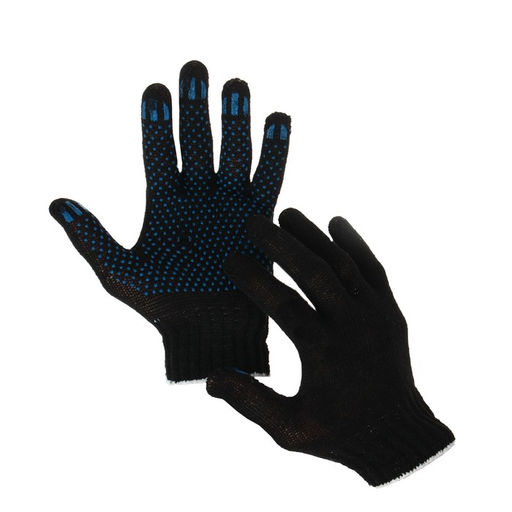• Цена за 10 шт. Перчатки садовые, хб, вязка 7 класс, 3 нити, размер 9, с ПВХ точками, чёрные