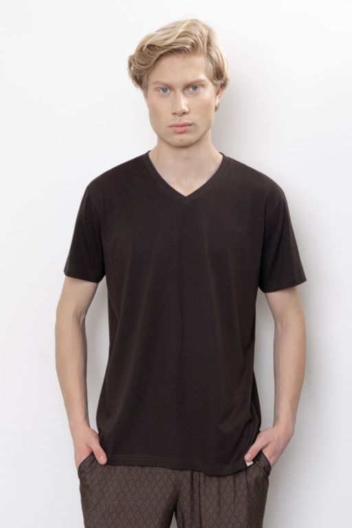 Хлопок 50%, Модал 50% Футболка свободного прилегания с коротким рукавом и Vобразным вырезом горловины. Декорирована брендовой нашивкой по низу изделия. Футболка дополнит образ к шортам и брюкам данной коллекции, а так же любым поясным изделиям из личного гардероба. Модель представлена в 2-х цветовых решениях.