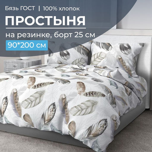 Очень удобная простыня на резинке из бязи ГОСТ плотностью ткани 140 г/м2 на спальное место 90*200 см (ширина и длина матраса). Простыня имеет глубокий борт/спуск 25 см. Резинка проходит по всему периметру (кругу) спального места. Простыни из бязи ГОСТ имеют длительный срок службы, ткань не линяет, не закатывается. у нее абсолютно натуральный состав - хлопок 100 %, она очень комфортна, не деформируется, хорошо впитывает влагу, позволяет коже дышать и способствует вашему полноценному отдыху! Обратите внимание! Простыни сшиты с учетом усадки ткани (с большим припуском по длине и ширине), поэтому необходима предварительная стирка данного швейного изделия. Мы являемся производителями, сами следим за выпускаемой продукцией и гарантируем высокое качество! Наши изделия произведены в Ивановской области, имеют сертификацию качества "ГОСТ 31307-2005", а также зарегистрированы в государственной системе маркировки "Честный знак". -- Характеристики -- Вес: 465 кг Размерность простыни: 1,5-спальная на резинке Размер простыни: 90x200 Ткань: Бязь ГОСТ Состав: 100 % хлопок Плотность: 140 г/м2 Плотность плетения: Высокая Отделка: Без отделки Режим стирки: При 40 градусах Цвет: Белый Расцветка: Марабу Вид принта: Перышки Целевая аудитория: Взрослая