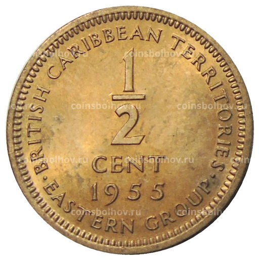 • Монета 1/2 цента 1955 года Британские Восточные Карибы