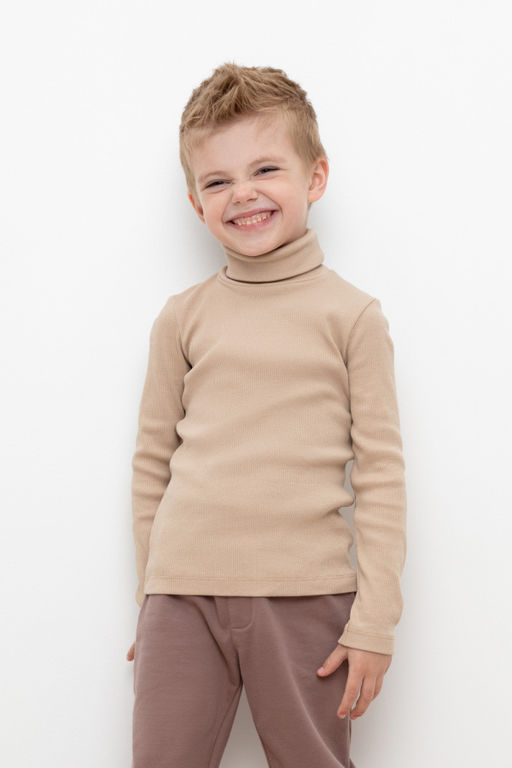 Однотонная водолазка с длинными рукавами. Выполнена из высококачественного эластичного трикотажа в рубчик. Эластан в составе позволяет изделию быть более эластичным и дольше сохранять опрятный внешний вид. Воротник с отворотом защищает горло от прохладного воздуха.­