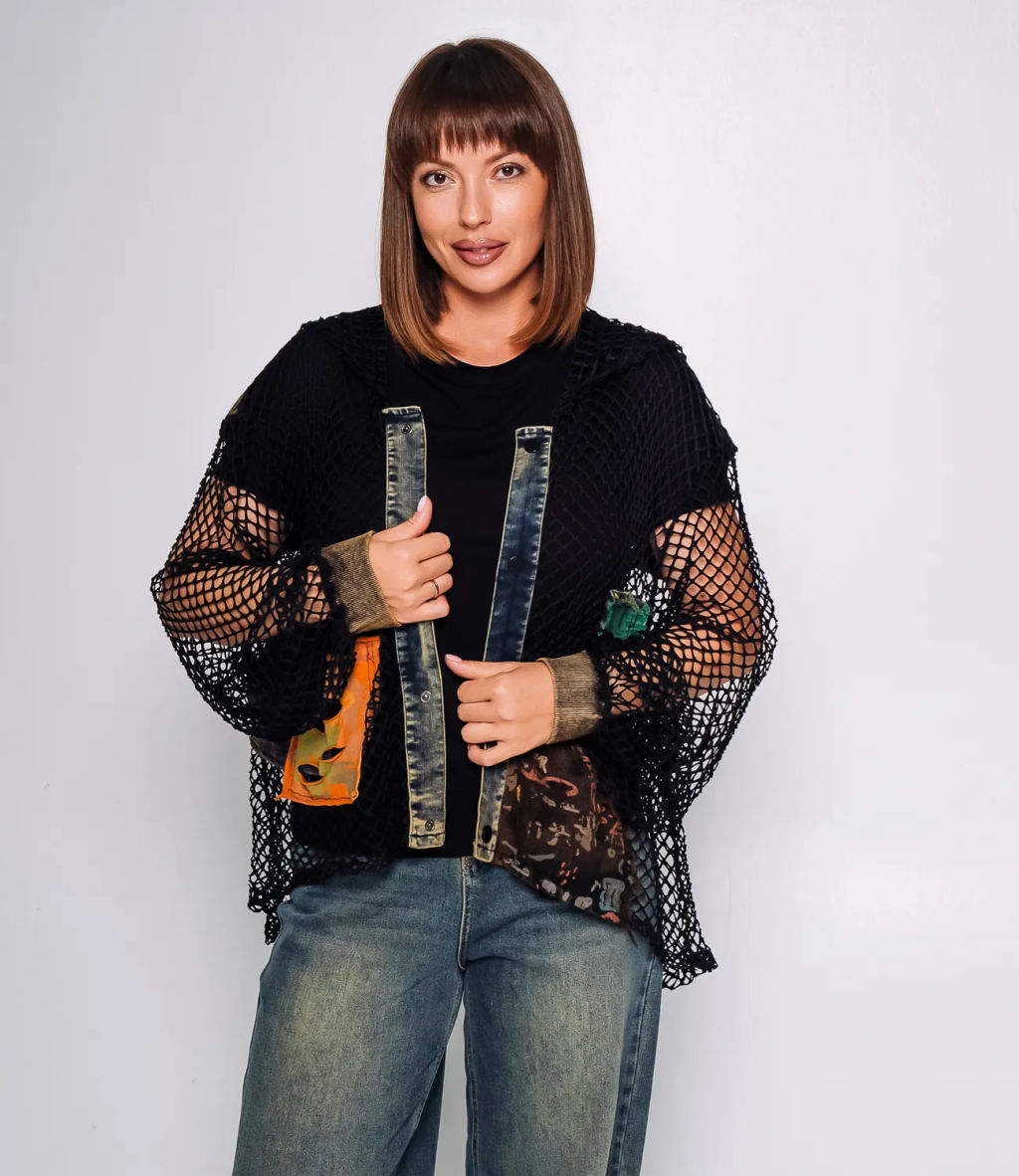 Куртка это одежда, которая подчеркивает уникальность каждой представительницы прекрасного пола. Внешний дизайн куртки выполнен с использованием крупной сетчатой структуры, что придаёт ей оригинальный и лёгкий вид. Обрамление из ткани с эффектом потертости и яркие контрастные нашивки в виде карманов подчёркивают стиль и индивидуальность изделия. Капюшон и длинные рукава позволяют использовать куртку в прохладную погоду, сохраняя при этом стиль и функциональность. Куртка отлично подойдёт любителям смелых решений в одежде, сочетая практичность синтетики с комфортом хлопка и выразительным дизайном.Для изготовления использован 75% полиэстер и 25% хлопок, который характеризуется отличным качеством. Даже после многократных стирок изделие не утратит первоначальной привлекательности. Вы обязательно будете его носить с радостью. Обратите внимание на цвет. Он является насыщенным и полностью соответствует фотографии на сайте. Чтобы вы были уверены в размере, мы представили на странице таблицу. Воспользовавшись ею, вы сможете сами обмерить себя и удостовериться. Установленная нами цена является приемлемой. Не откажите себе в удовольствии быть неповторимой! Вы можете заказать онлайн презентацию на интересующие Вас модели. Наши менеджеры свяжутся с Вами и проведут индивидуальную видеотрансляцию, помогут составить заказ и ответят на Ваши вопросы. -- Характеристики -- Цвет: черный Пол: Женский Страна производитель: Китай Сезон: Осень Материал: Хлопок, Полиэстер, Акрил
