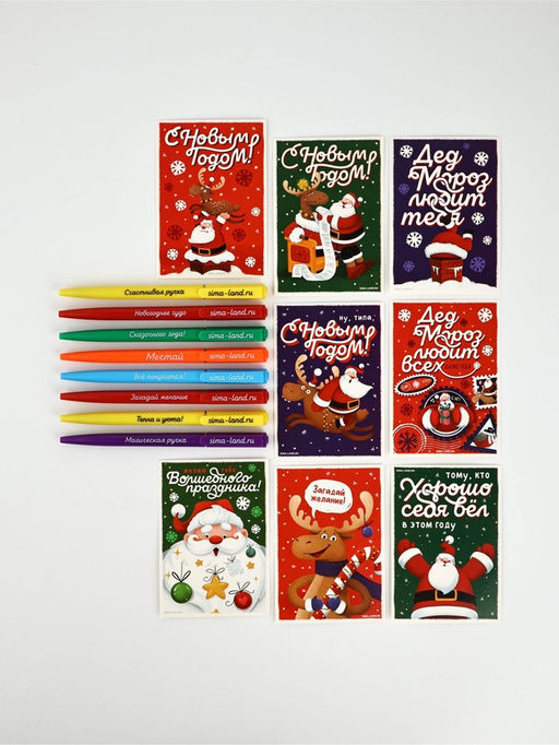 Подарочный набор новогодний, 8 ручек, 8 открыток, 8 блокнотов МИКС
