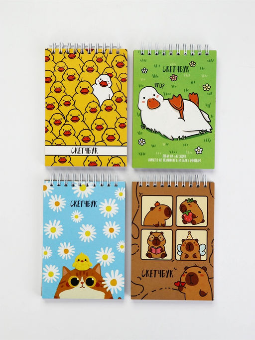 Цена за 4 шт. Скетчбук А6, 80 л. 100 г/м "Зверьки" МИКС