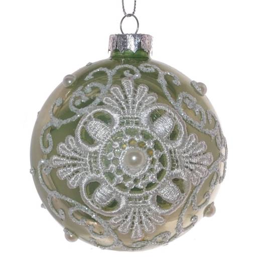 Новогодний изящный зеленый елочный шар, украшенный кружевом, изготовлен из стекла Материал: Стекло