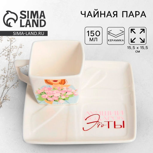 Чайная пара керамическая «Лучший подарок»: кружка 150 мл, блюдце 15,5 х 15,5 см