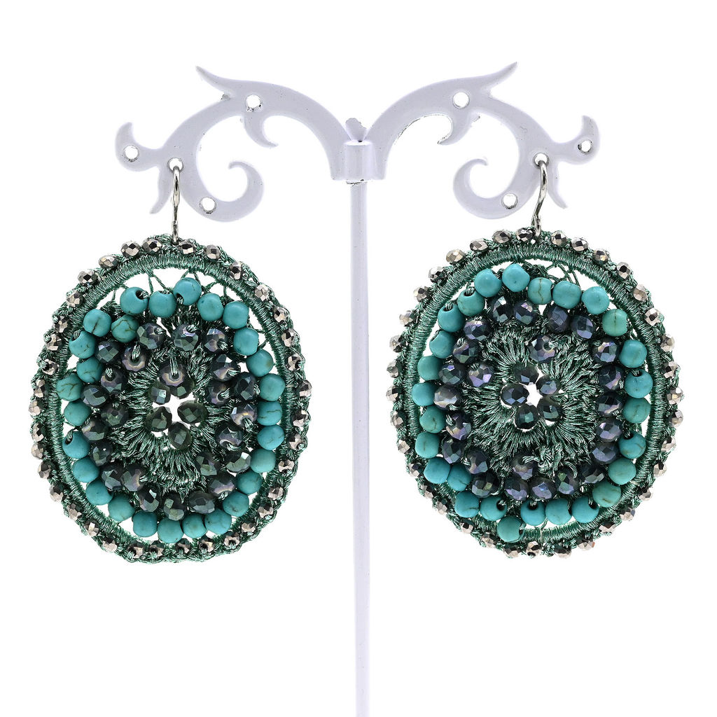 • Серьги авторские овал с цирконами и турквенитом в оплетении цв.бирюзовый