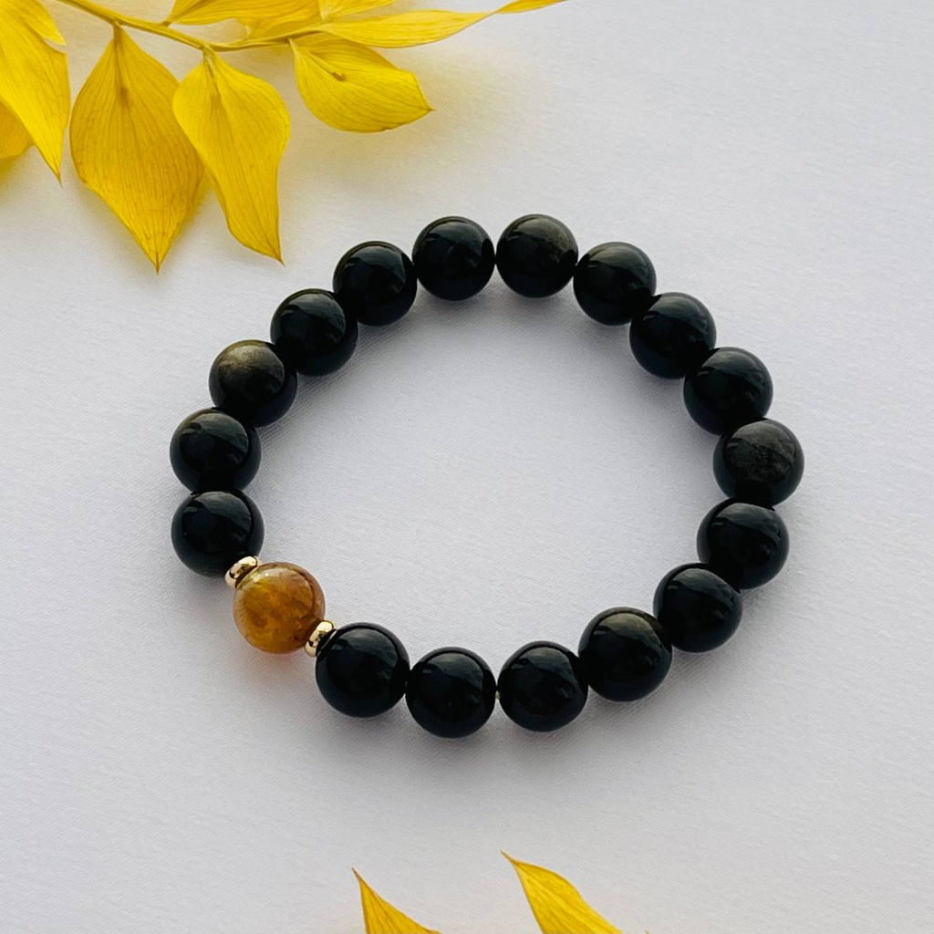 • Браслет из золотистого Обсидиана с Цитрином 16,5 см