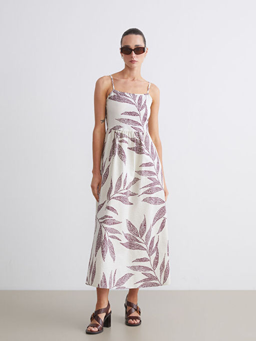 Kare Yaka ?i?ekli Ask?l? A Kesim Elbise