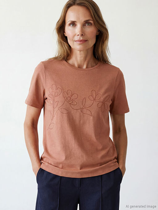 • Bisiklet Yaka Nak??l? Kad?n Ti??rt