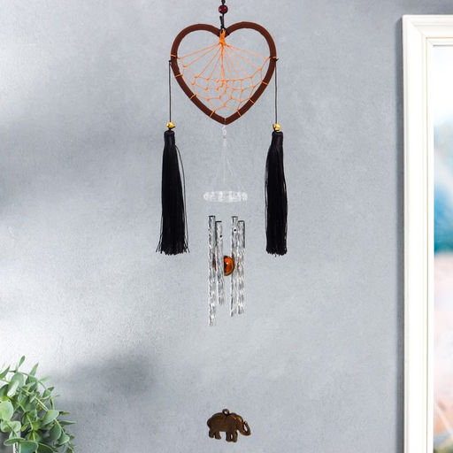 • Музыка ветра с ловцом снов Сердце с кисточками и слон, 4 трубки, d=10.5 см, длина 45 см