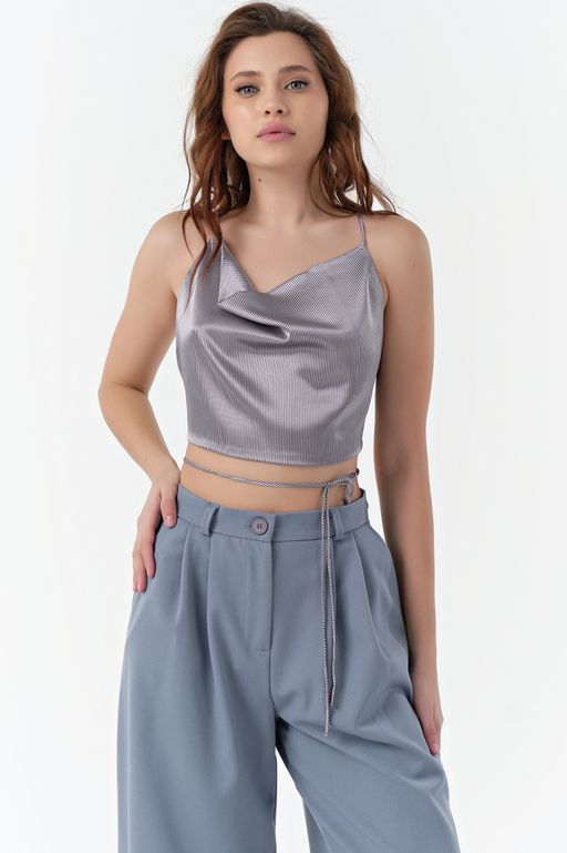 • Кроп-топ атласный на бретелях в полоску ONE SIZE