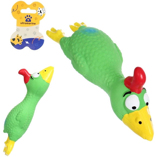Цена за 2 шт. Игрушка резиновая для собак с пищалкой "МОЙ БРО", Петушок, цвет зеленый, 16*5*6см (лейбл)