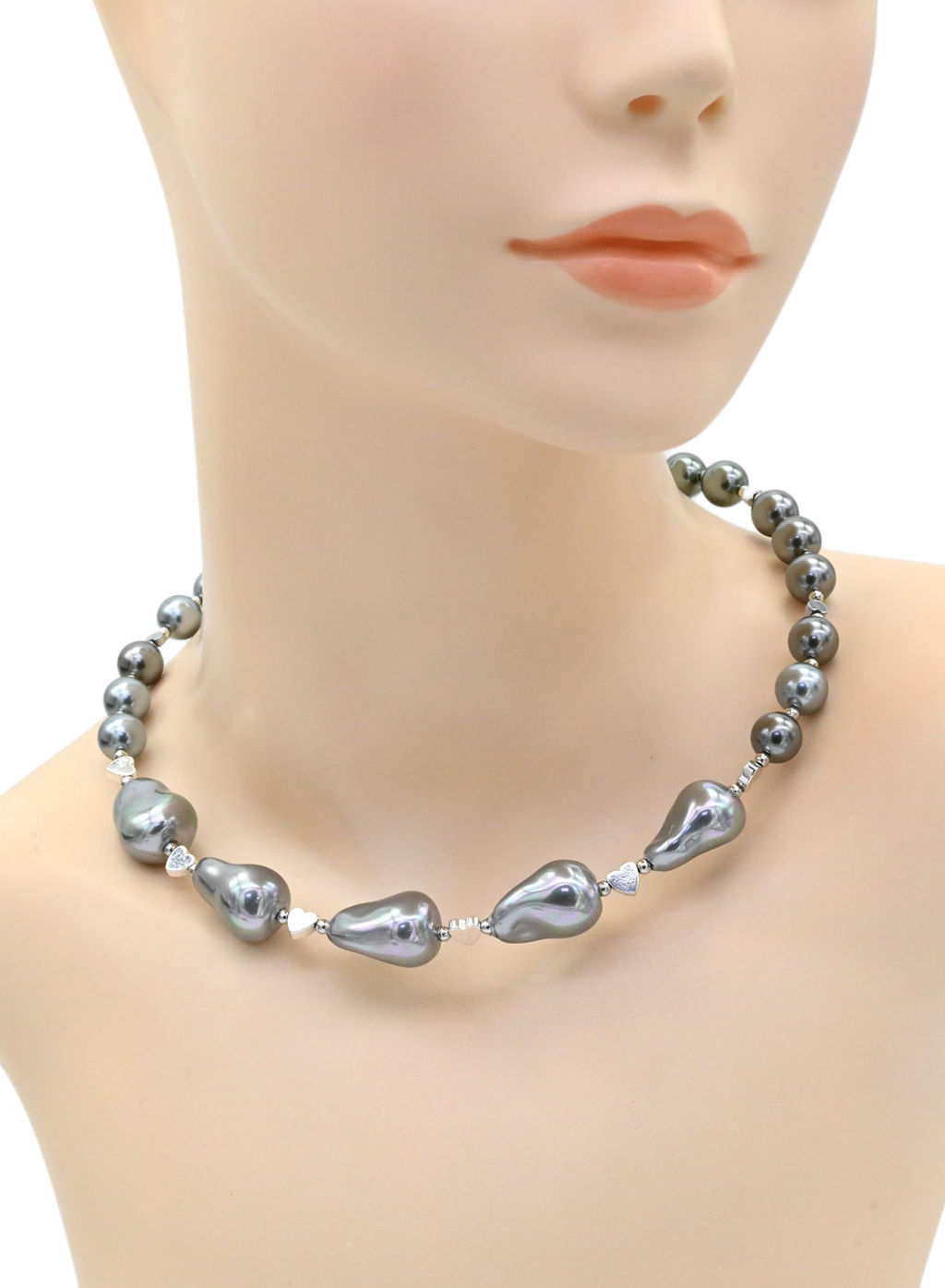 • Колье чокер с майоркой Барокко 15*20мм цв.серебристо-серый, 43см