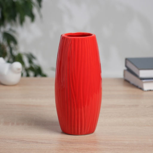 Ваза для цветов «Тьяго», полоски бочка, d=5 см, 17×7 см, керамика, красная