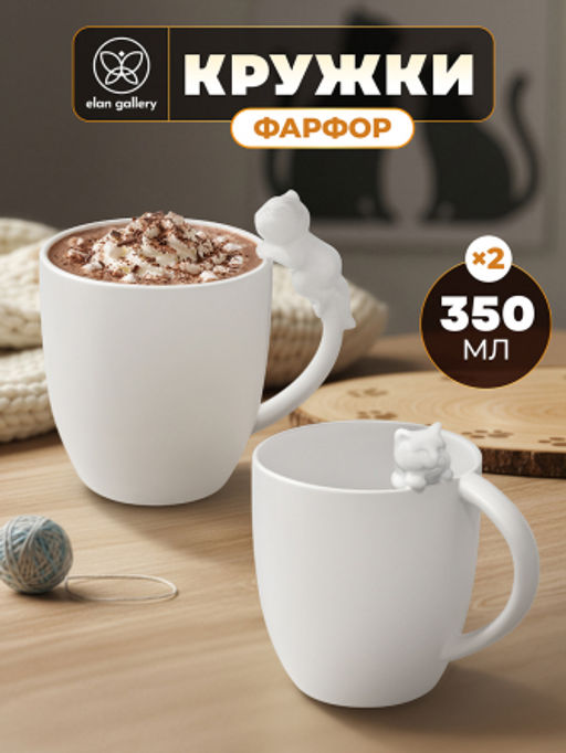 Набор 2 кружек Котята от Elan Gallery предназначен для эстетичной сервировки вашего стола. Размер одной кружки 13x9x12 см, второй 12x9x11,5 см. Объём каждой ёмкости 350 мл. Украшены декоративными фигурками котят. Высота каждой кружки без фигурки 9,5 см. Фигурки не съёмные! Комплект выполнен из высококачественного белого фарфора. Он не впитывает цвет напитков и легко отмывается, благодаря чему надолго сохраняет свою белизну. Кофейные кружки помогут вам провести множество приятных завтраков с капучино и латте, а также уютные чайные вечера с конфетами, вафлями, другими десертами и сладостями. Подойдут ценителям чая и кофе, которые любят пить из красивой и необычной посуды. Согрейтесь зимой любимым напитком: какао с маршмэллоу, ягодным чаем или горячим шоколадом. Летом освежитесь домашним лимонадом или морсом. Не рекомендуется применять абразивные моющие средства. Подходят для использования в посудомоечной машине и микроволновой печи. Поставляются в дизайнерской картонной коробке благодаря ей вам не потребуется дополнительная подарочная упаковка. Фарфоровая сервировочная посуда от бренда Элан Галерея станет оригинальным подарком для хозяйки, ценящей не только практичность, но и привлекательность. Она станет украшением любого кухонного инвентаря и позволит собрать красивый сервиз в едином стиле!