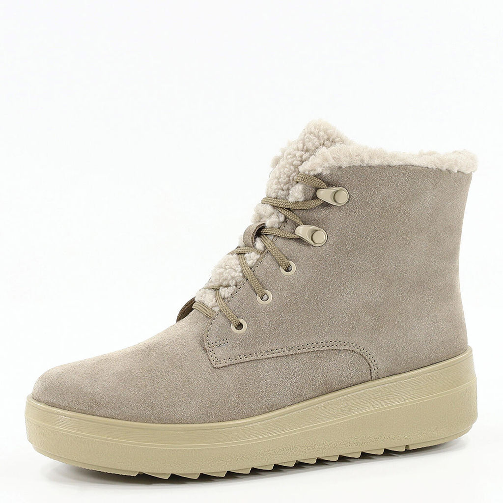Цвет: Серо-бежевый. Материал верха: Натуральная кожа спилок-велюр+искусственный мех. Материал подкладки: Полотно ворсовое трикотажное + искусственный мех. Материал подошвы: Полиуретановая композиция+Резина. Высота Каблука: 40. Сезон: Зимняя