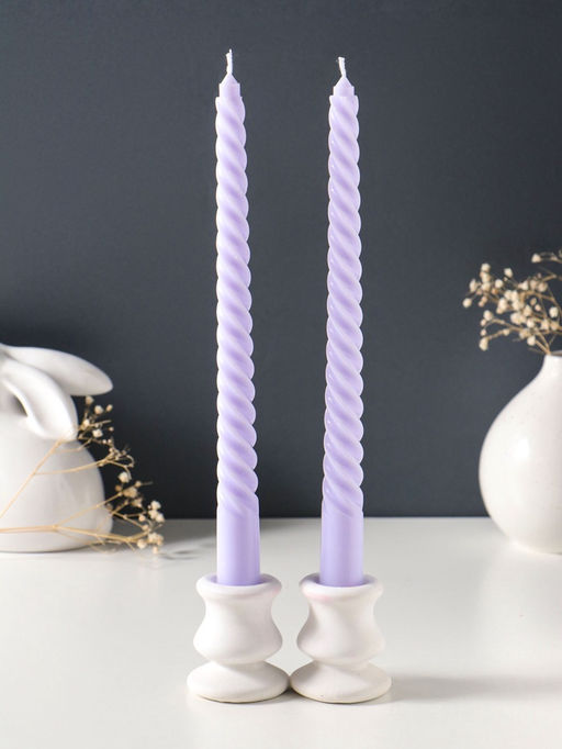 • Цена за 2 шт. Свеча витая 25 см (набор 2 шт) 57 гр, 5 ч, цв. лаванда