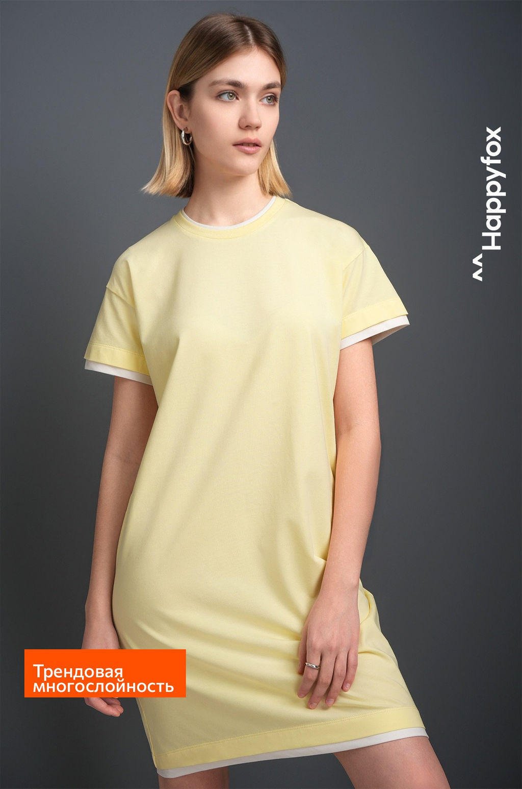 Состав: хлопок 95%, эластан 5% Женское платье-футболка прекрасное решение для жаркого лета. Свободное платье с коротким рукавом выполнено из хлопка с добавлением эластана (95% хлопок, 5% эластан, плотность 180?г/м2), что делает его приятным к телу, эластичным и комфортным для повседневного ношения. Спортивное трикотажное платье прямого кроя создаёт красивый свободный силуэт. Преимущества: короткое платье подчёркивает женственность, не сковывая движения; удобный прямой крой делает образ стильным; мягкий хлопковый трикотаж с эластаном сохраняет форму после стирок; белый кант на рукавах и подоле создает визуальный контраст; универсальный дизайн подходит для работы, прогулок, отдыха и поездок к морю; желтое платье оттенка мокко легко сочетать с другими элементами гардероба, создавая повседневные образы.Летнее платье футболка для женщин прекрасный вариант на каждый день. Размер 42: длина:92 см; ширина:51 см. Размер 44: длина:93 см; ширина:52 см. Размер 46: длина:94 см; ширина:53 см. Размер 48: длина:95 см; ширина:54 см. Размер 50: длина:96 см; ширина:55 см. *замеры выборочные, могут незначительно отличаться. Видео