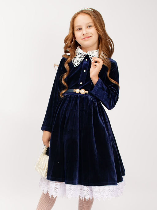 Очаровательное платье для девочки Соль&Перец из бархата, с длинным рукавом. Платье дополнено съёмными поясом-резинкой и белым кружевным воротником. Износоустойчивый материал позволит надолго сохранить форму и привлекательный внешний вид изделия. Идеальный выбор для создания стильного, школьного образа. Платье без подъюбника.