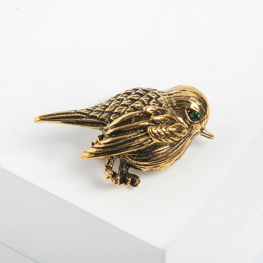 • Брошь «Птица» воробушек, цвет зелёный в чернёном золоте