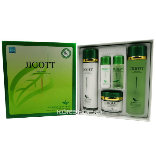 • Набор для ухода за лицом с зеленым чаем (крем, тонер, эмульсия) Jigott, Корея Акция