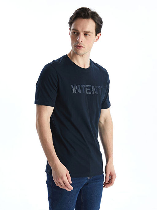 Bisiklet Yaka Bask?l? Penye Erkek Ti??rt