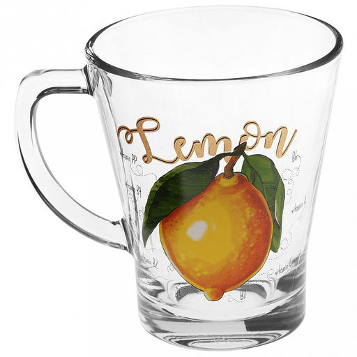 Кружка стеклянная "Полезный лимон" 300мл, д9см, h10,6см, форма "Аура" (Россия)