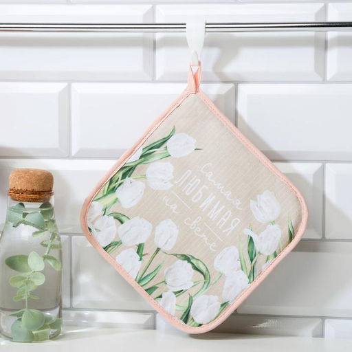 Эта квадратная прихватка с тюльпанами больше, чем просто кухонный аксессуар. Она создана для ежедневной заботы о себе и близких. Плотный хлопок с мягкой подложкой надёжно защитит ваши руки, а нежный бежевый цветок добавит уюта даже в самый обычный будний день.