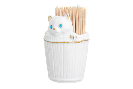 Вазочка п/зубоч. 5,5*5,3*8 см 65 мл "Кошечка в кадушке стразы" белая, золото
