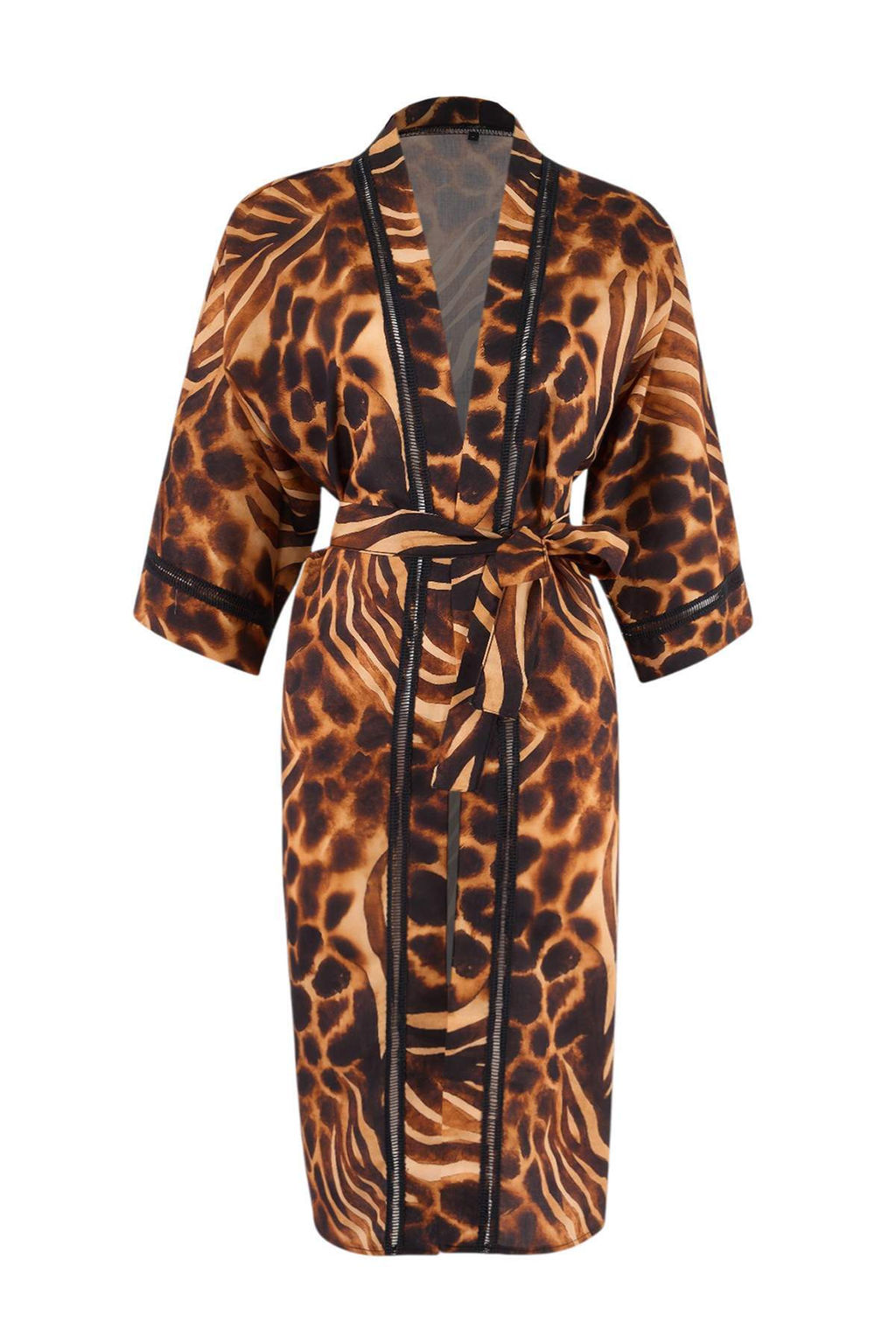 Leopar Desenli Dokuma Midi Aksesuar Detayl? 100% Pamuk Plaj Kimono & Kaftan TBESS26KM00002