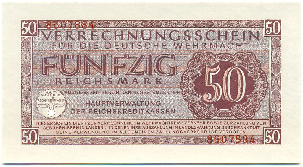 Банкнота 50 рейхсмарок 1944 года Германия (Вооруженные силы Германии)