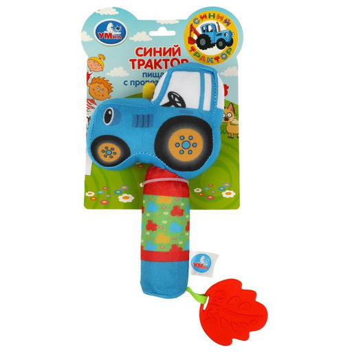 Погремушка - пищалка мягкая "Синий Трактор" с прорезывателем и фактурными элементами (EF-STR-01, 359107)