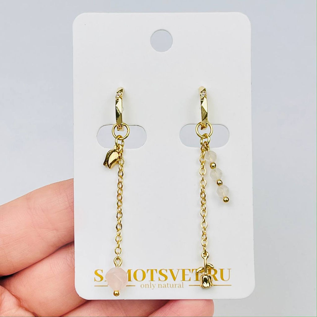 • Серьги длинные из Розового кварца