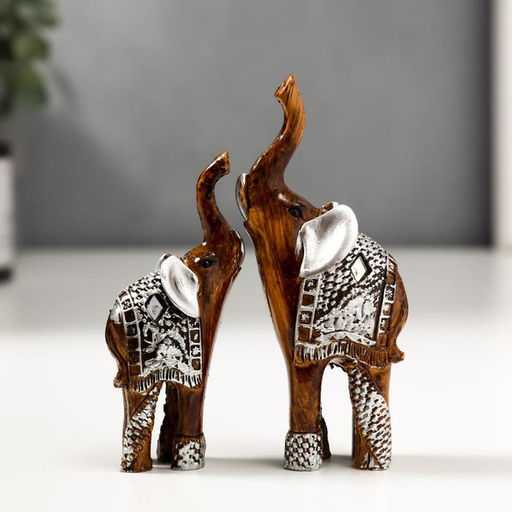 Набор фигурок полистоун «Два слоника под дерево в серебристой попоне», 2 шт., 11×8×3.2 см