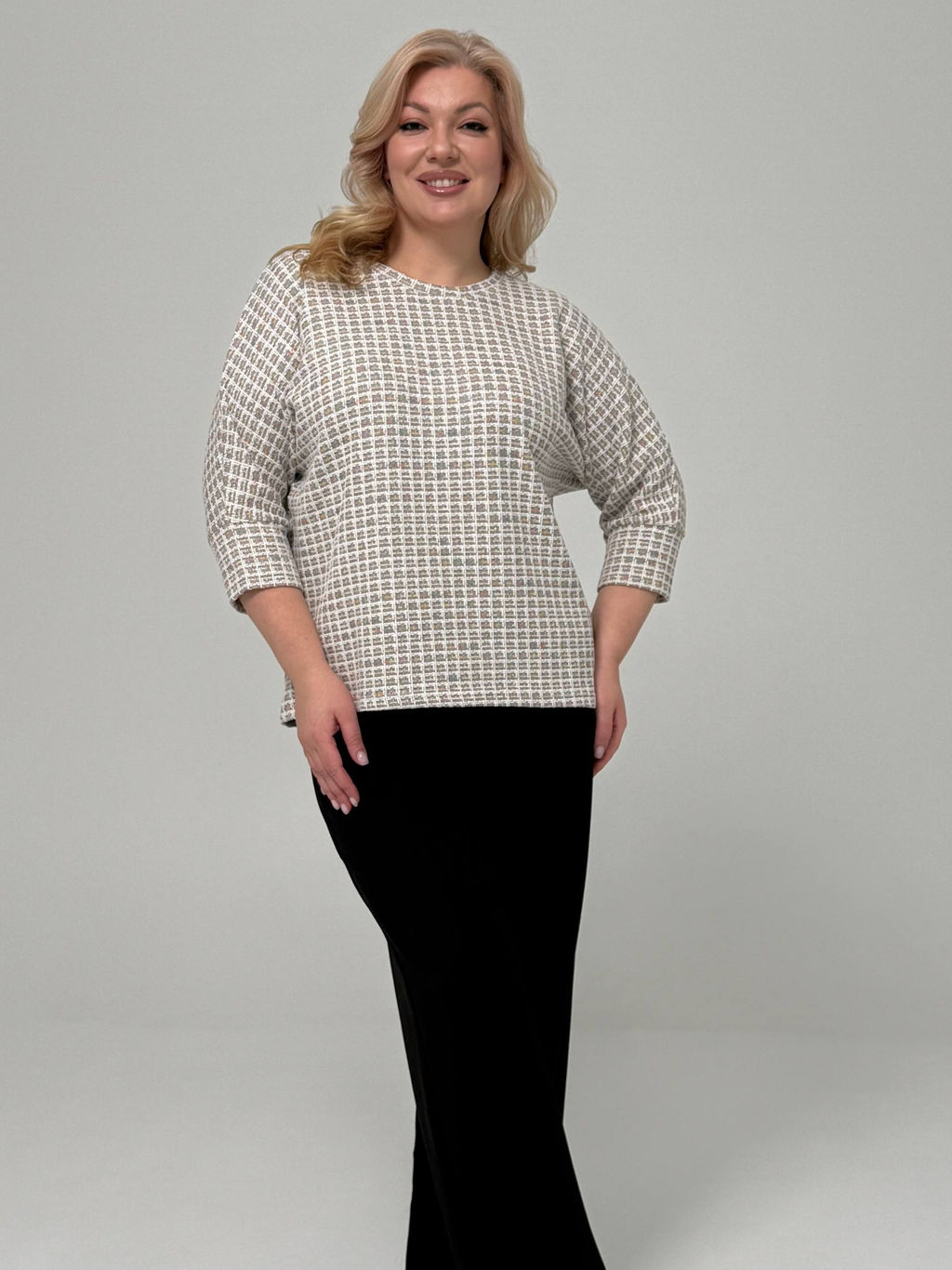 Туника с клетчатым узором белая­