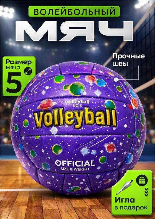 • Мяч волейбольный, размер 5, 270гр (RKJ-7439) Пакистан, "Галактика" фиолетовый