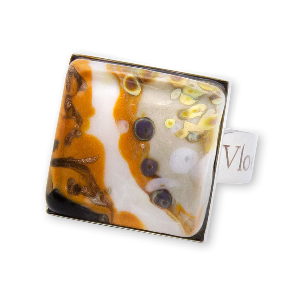 Кольцо изготовлено из муранского стекла и гипоаллергенной ювелирной стали, что очень важно для людей с чувствительной кожей. Металл не темнеет и не подвергается воздействиям окружающей среды, надолго обеспечивая красивый внешний вид изделия. Размер стеклянного элемента - 1,6x1,6 см. Кольцо безразмерное, регулируется с 16 до 19 размера. Вес - 5 гр.