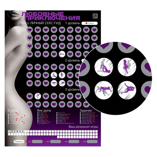 Под скретч-слоем секс-гида вас ждёт 81 секс-поза, а также 24 интересных места и 8 дополнительных заданий.