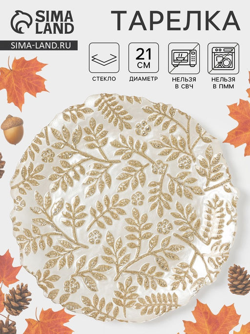 • Тарелка «КРАСКИ ОСЕНИ», d=21 см, стекло, золотистая