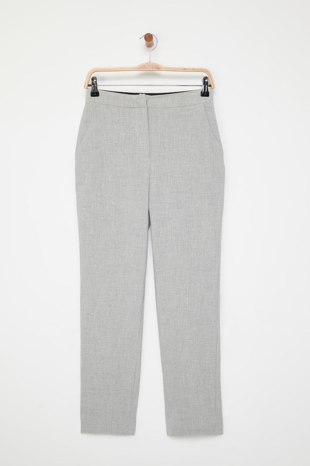 • Gri Yuksel Bel Beli Lastikli Cigarette Dar Paca Dokuma Pantolon TWOSS25PL00011