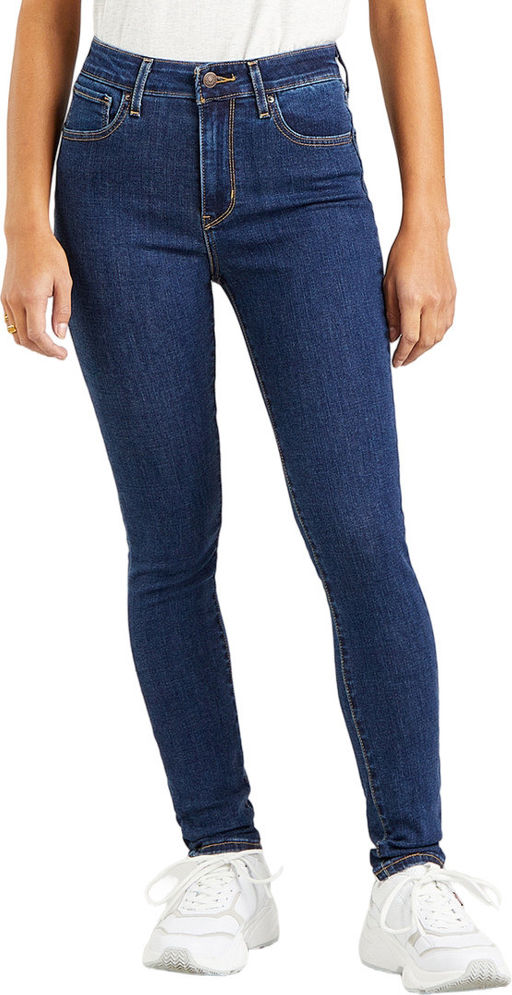 Женские облегающие джинсы Levis синего цвета. Выполнены из эластичного денима для комфорта движения. Высокая посадка на талии. Легендарная кожаная нашивка на задней стороне пояса. Застежка на молнии. Карманы спереди и два кармана с фирменными дугообразными строчками Levis сзади.