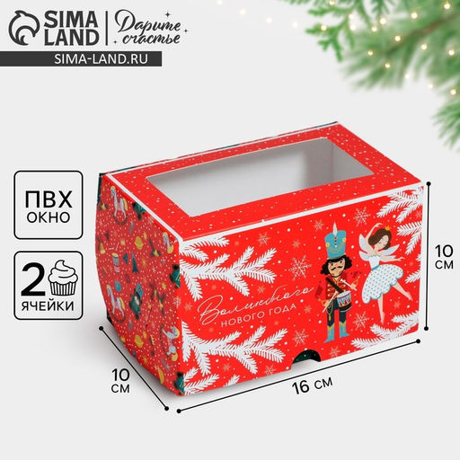 Цена за 5 шт. Коробка для капкейков «Новый год: Щелкунчик» 10×16×10 см