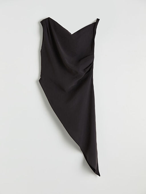 • D?k?ml? Yaka Modal Kar???ml? Asimetrik Kesim Bluz