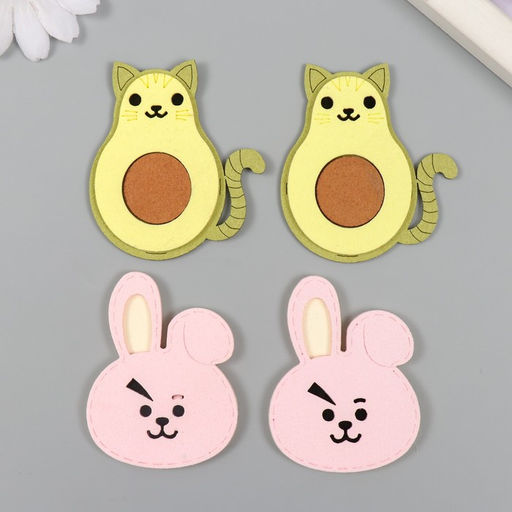 Цена за 4 шт. Декор для творчества иск. замша «Зверята и фрукты», 6×3.7 см, МИКС