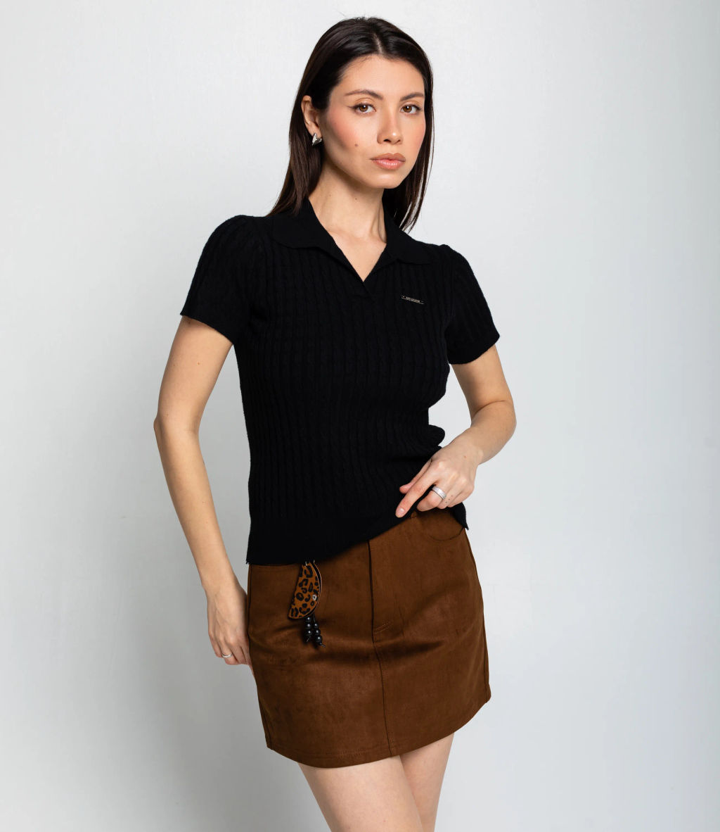 Эта футболка прекрасный выбор для вашего магазина, предлагая стильный и универсальный дизайн, который станет отличным дополнением к гардеробу ваших клиентов. Футболка-поло с коротким рукавом и классическим воротником, выполнена из фактурной вязки с рельефными вертикальными узорами. Компактный крой подчёркивает фигуру, длина укороченная, заканчивается выше талии. На груди небольшой вышитый логотип. Ткань эластичная, плотно прилегает к телу, сочетает комфорт и аккуратный внешний вид. Выполненная из 65% хлопок и 35% полиэстер, футболка обеспечивает отличное качество и приятные тактильные ощущения. Независимо от сезона, она станет любимым элементом в гардеробе ваших клиентов. На странице сайта доступна таблица размеров, что позволит вашим покупателям легко найти подходящий вариант. Установленная цена делает эту футболку доступной для широкой аудитории, что обеспечит вам высокий уровень продаж.­